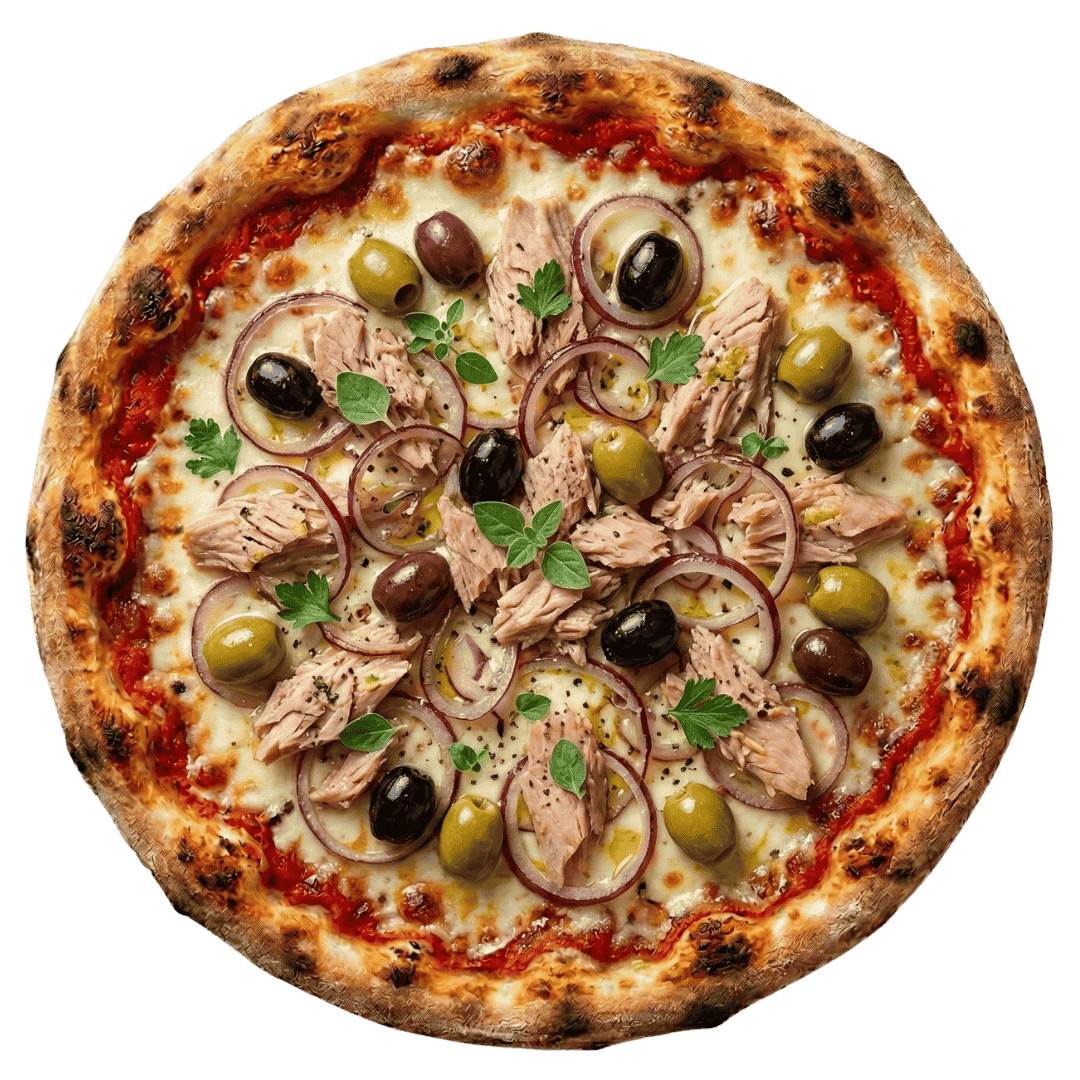 Die Veneziana überzeugt mit einer aromatischen Tomatensauce, cremigem Käse und einer Komposition aus Oliven, Thunfisch und Zwiebeln. Ein kräftiger, aber ausgewogener Geschmack mit mediterraner Note.